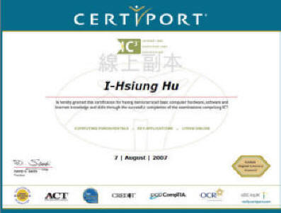 IC3 2005 國際證書樣本 |