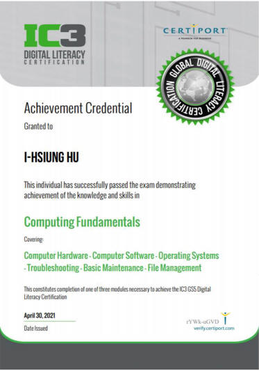 證書樣式 ( *通過三科核發 IC3國際證照 ) |